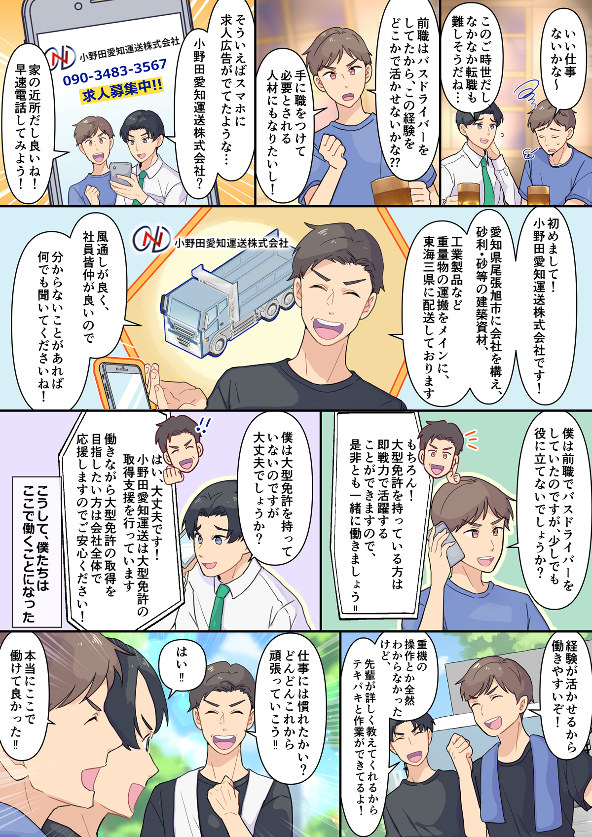働きながら大型免許の取得を目指したいあなたを会社全体で応援します。